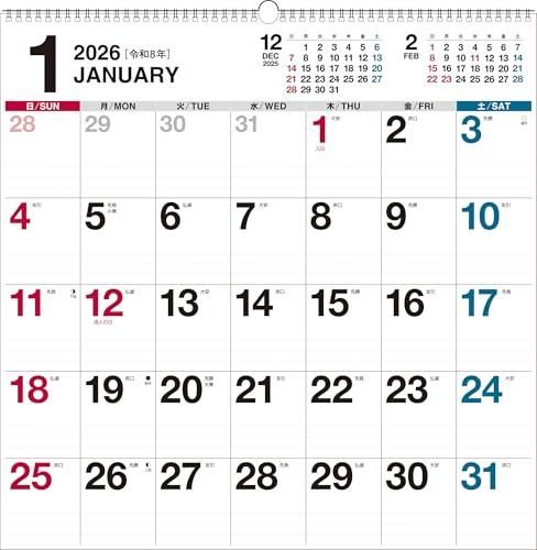 【K19】 2026年 書き込み式シンプル壁掛けカレンダー[B2変型]